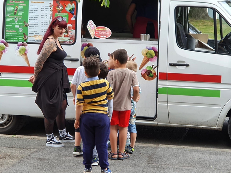 Bei Waffeln, Kindercocktails und Tanz verbrachten die Kinder der Wilden Wiese zwei schöne Stunden. Zum Abschied bekamen die Kinder Ihre Kindergartenmappe gefüllt mit Briefen, Bildern und den Kunstwerken der Kinder, eine kleine Schultüte und ein Abschiedsgeschenk. Zur Überraschung und Begeisterung aller Kinder kam ein Eiswagen am Kindergarten vorbei.