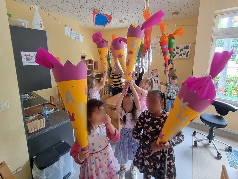 Da die Vorschulkinder nach den Ferien eine Grundschule besuchen werden, wurde der Abschied jeweils mit einem kleinen Fest gefeiert.