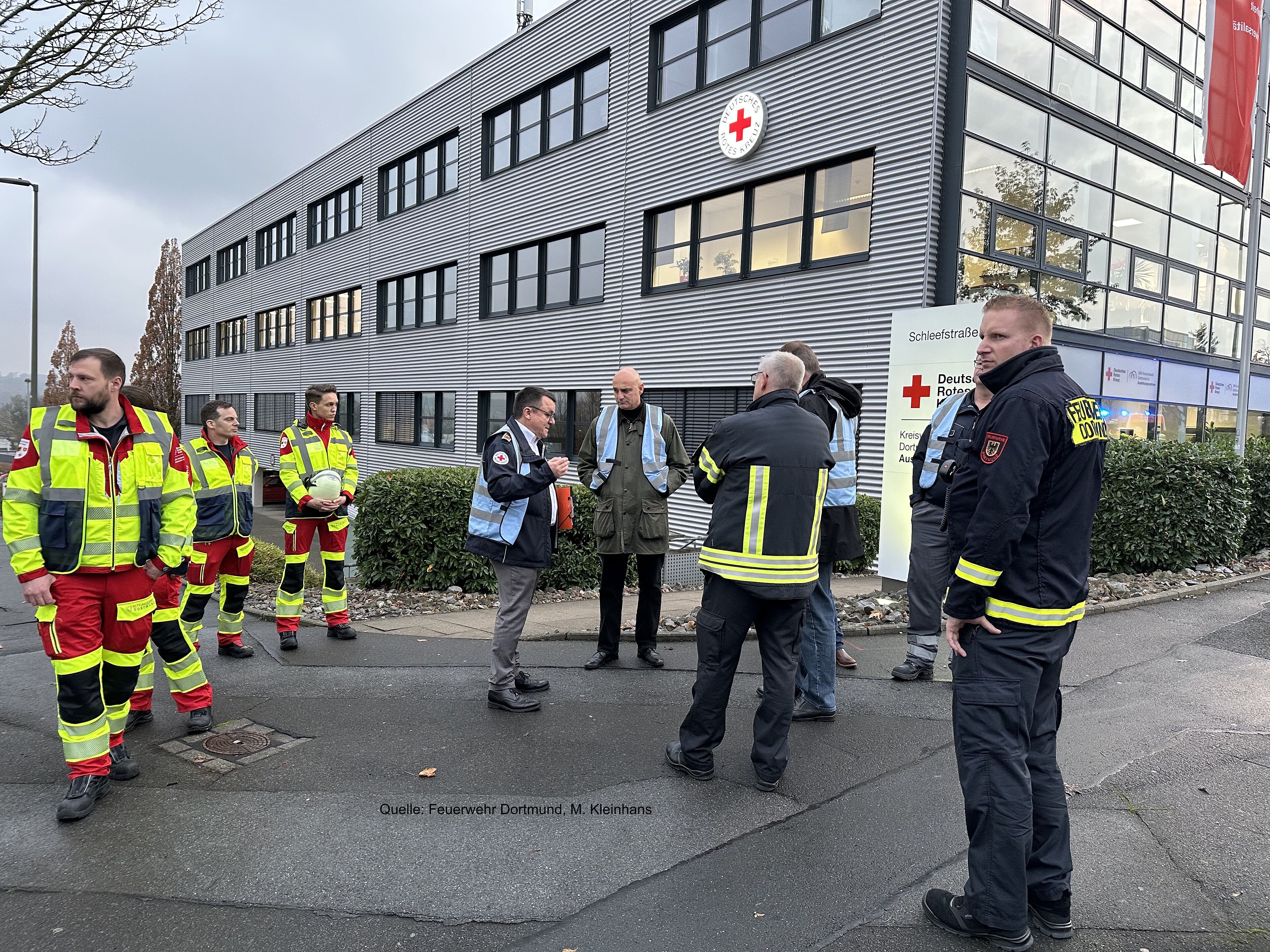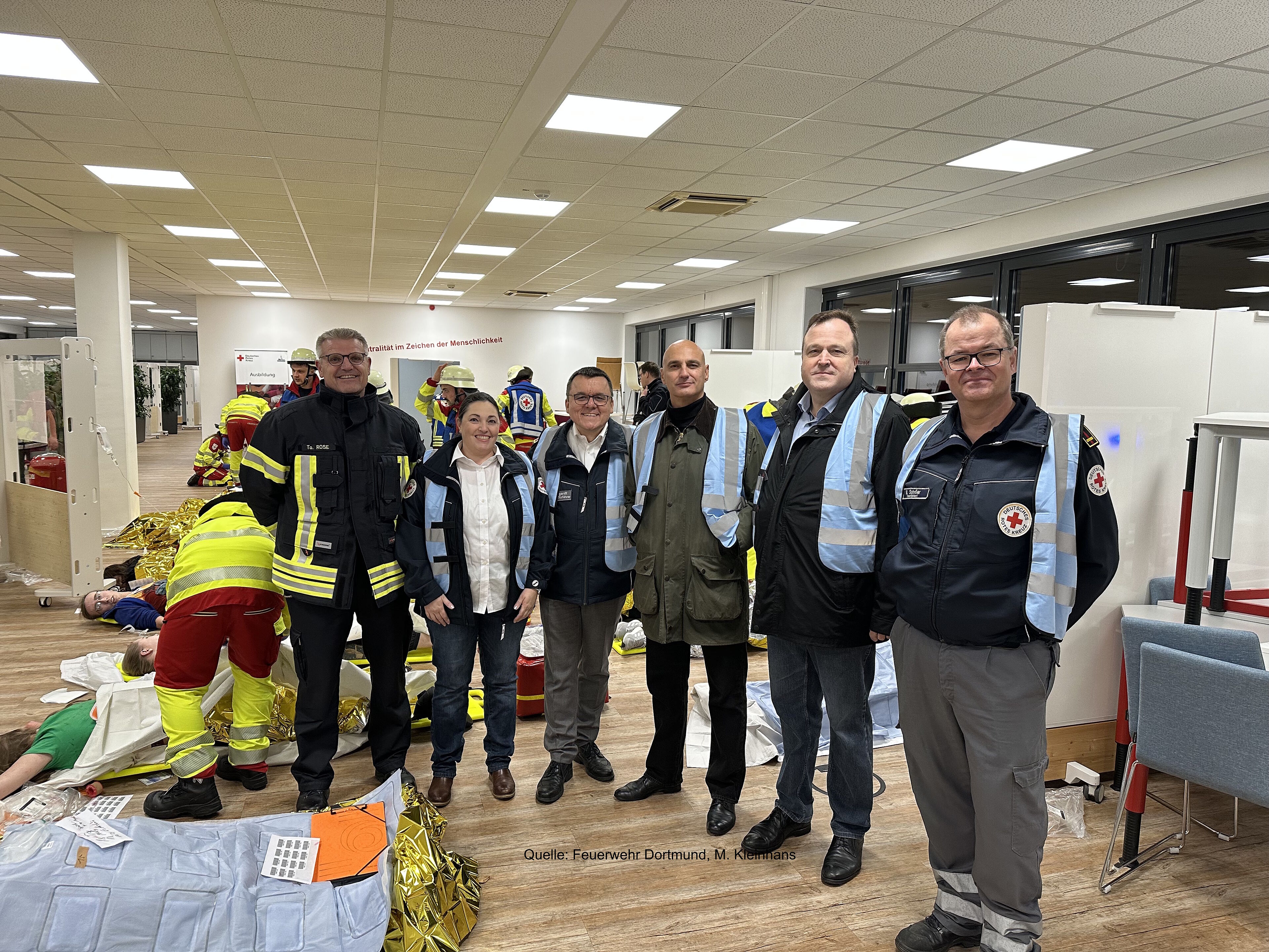 Die mehr als dreistündige Übung wurde vom Oberbürgermeister Alexander Kalouti, dem Ordnungsdezernenten Norbert Dahmen, Torsten Rose als diensthabendem Direktionsdienst der Feuerwehr Dortmund und Fred Weingardt als Kreisgeschäftsführer des DRK-Kreisverbandes Dortmund, begleitet.