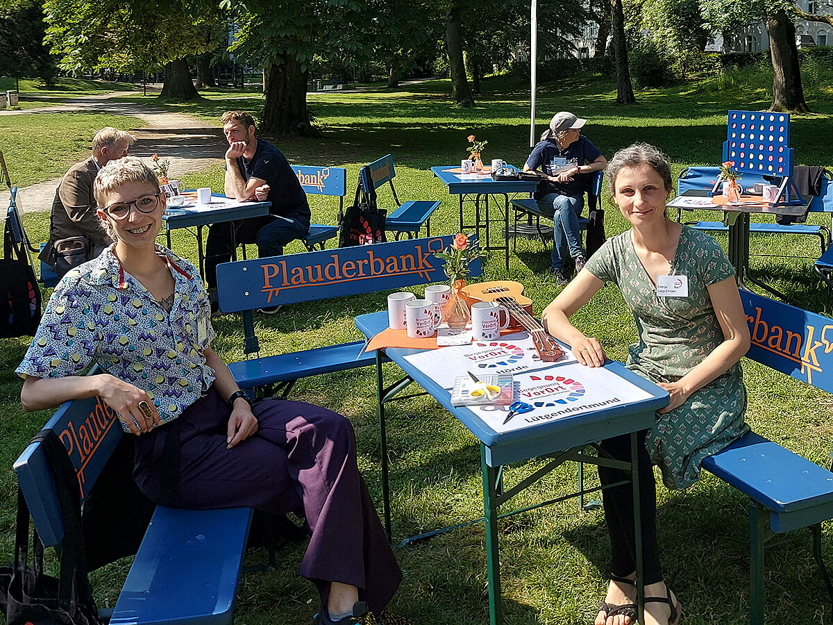Sie saßen dabei auf den „Plauderbänken“ - sie waren eines der ersten Projekte, die „Begegnung VorOrt“ angestoßen hatte. Da während der Lockdowns die Begegnungsstätten geschlossen bleiben mussten, waren Angebote draußen möglich. Die Plauderbänke waren dabei ein niederschwelliges Angebot, um mit den Menschen ins Gespräch zu kommen und zugleich auch eine Idee gegen Einsamkeit und Langeweile, erinnerte Cordula von Koenen, BVO-Verantwortliche bei der AWO.