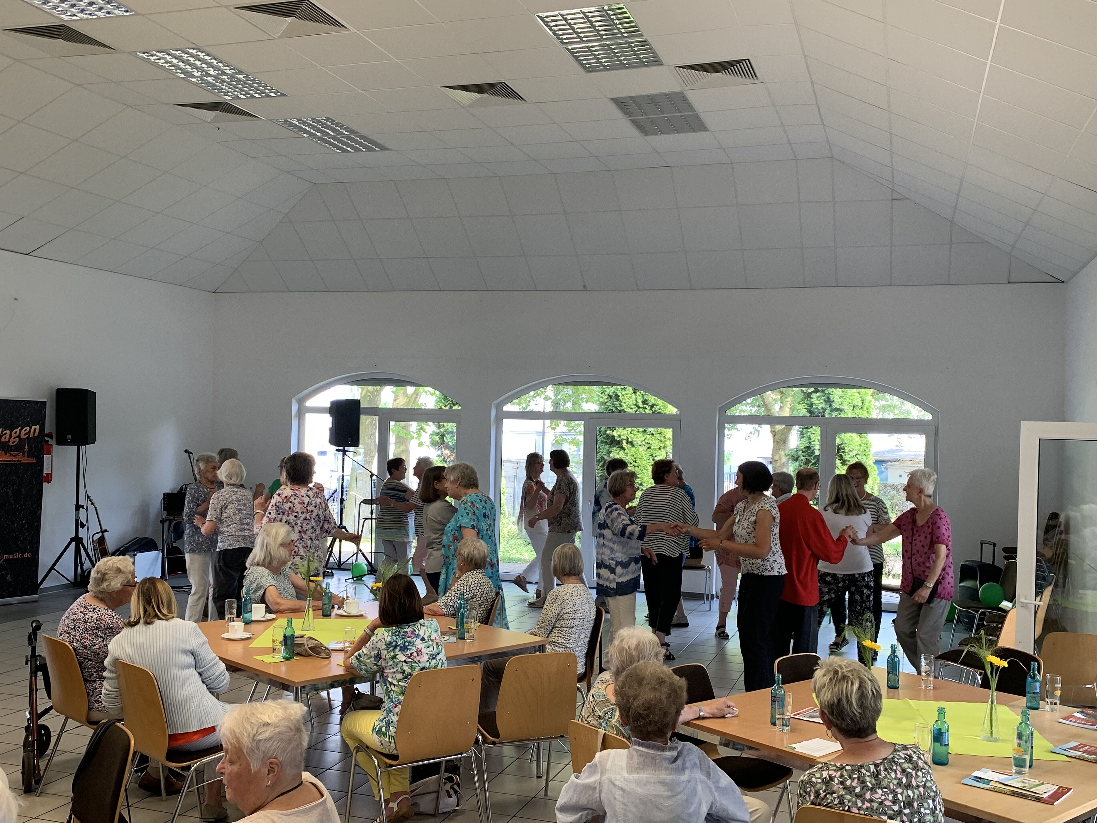Die Gäste bekamen einen bunten Strauß an Bewegungsmöglichkeiten präsentiert, um auch im Alter fit und mobil zu bleiben. Ob Sturzprophylaxe-Training und Hockergymnastik mit dem StadtSportBund Dortmund e.V., Kreis- und Blocktänze mit der Tanzgruppe des Ortsvereins der AWO Westrich oder Tai-Chi-Übungen mit Bernd Nunnemann aus der DRK-Begegnungsstätte in Bövinghausen – alle Angebote luden zum Mitmachen ein. Die Gäste folgten dieser Einladung auch trotz der hohen Temperaturen mit Begeisterung. Wer nicht mehr so gut zu Fuß war oder eine Pause brauchte, konnte sich mit der Fahrrad-Rikscha des Fördervereins Marten und Germania e.V. eine Rundfahrt durch das Quartier gönnen. Weitere Informationen und Tipps zur Erhaltung der Gesundheit erhielten Senior*innen an den Infoständen des Sanitätshaus Amberg, der Central Apotheke, des StadtSportBundes Dortmund e.V., des ADFC Dortmund e.V., des Seniorenbeirats und des Seniorenbüros Lütgendortmund. Die Band „Die Pottblagen“ sorgte für die musikalische Unterhaltung. Ein großer Dank der Organisatoren galt den ehrenamtlichen Helferinnen und Helfern aus den Kirchengemeinden und Seniorengruppen, sowie dem Projekt Aktionsplan Soziale Stadt für die finanzielle Unterstützung.