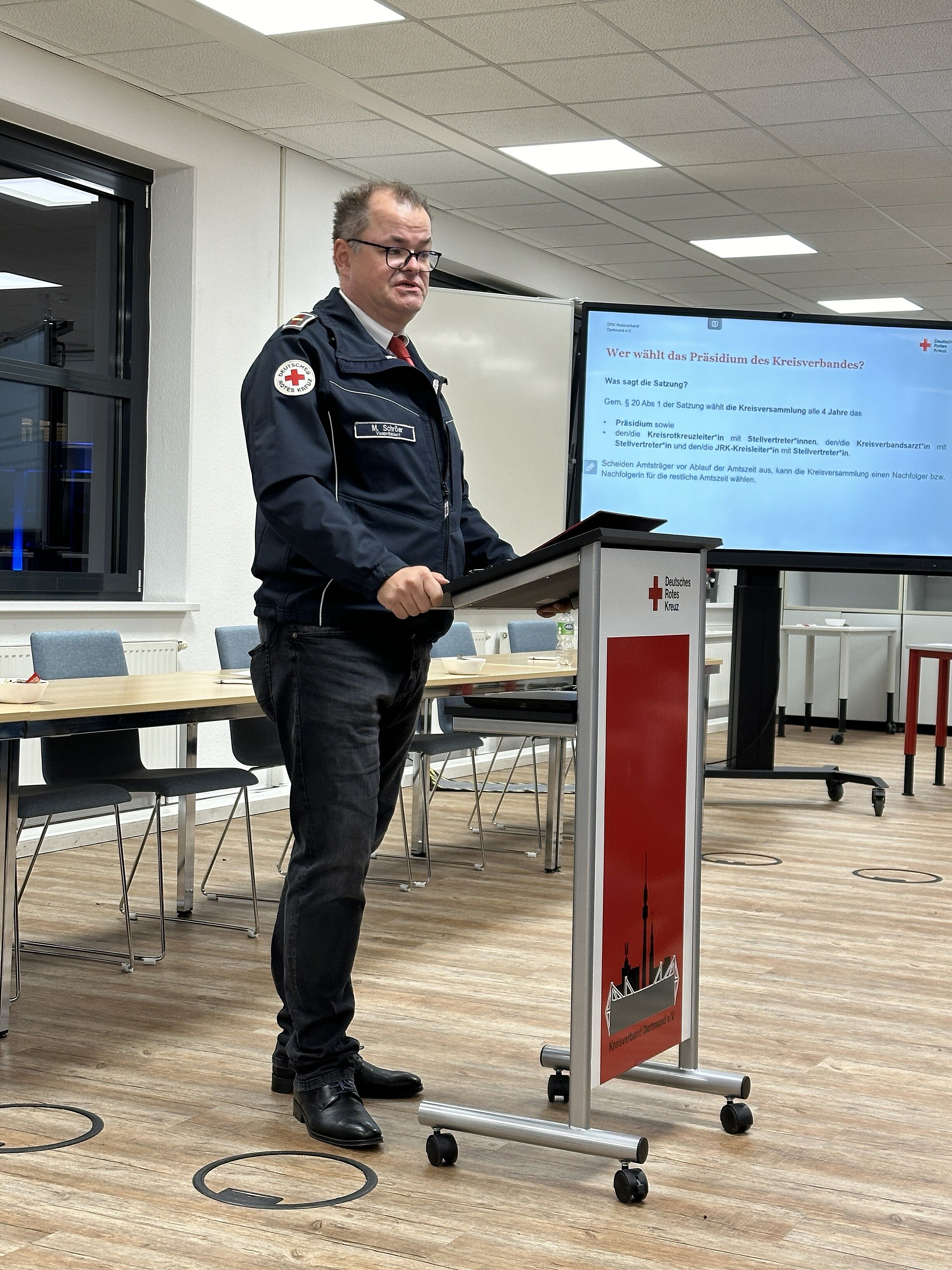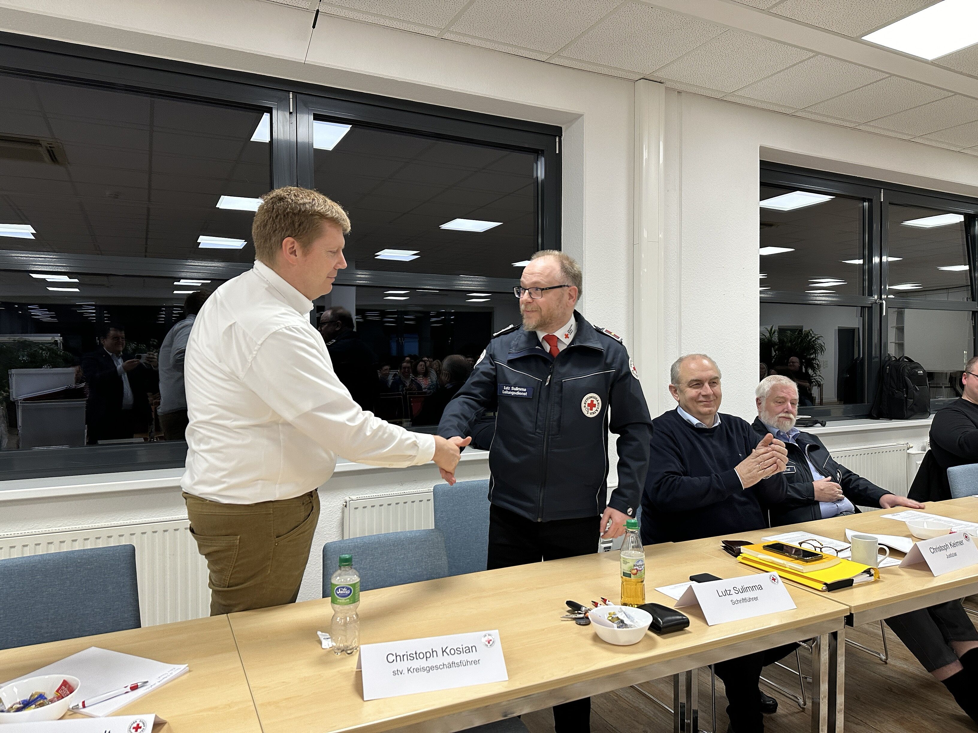 Ein weiterer Schwerpunkt der diesjährigen Kreisversammlung waren Nachwahlen zu unterschiedlichen Ämtern im Präsidium. Als neuer Kreisrotkreuzleiter wurde Lutz Sulimma in das Präsidium bestätigt. Sein Vorgänger Christoph Richwin stand für eine weitere Amtszeit nicht mehr zur Verfügung und gratulieret seinem Nachfolger und wünschte Lutz Sulimma alles Gute für die neue Aufgabe. Sven Hamann übernimmt die Aufgabe des stv. Kreisrotkreuzleiters im Präsidium.