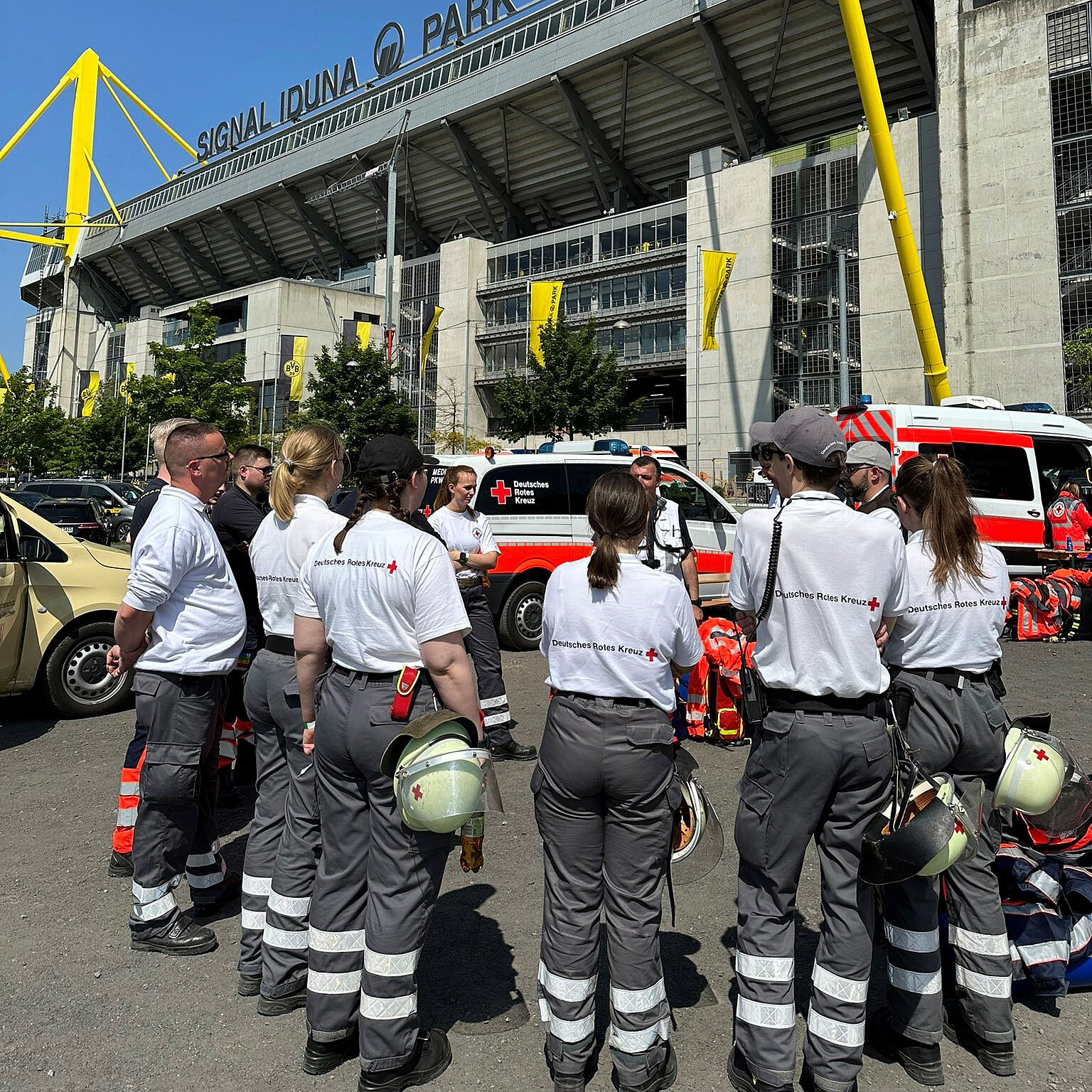 In der Regel ist das Rote Kreuz mit rund 120 Einsatzkräften zu Bundesligaspielen im Stadion vertreten, an diesem letzten Spieltag hatte Borussia Dortmund allerdings die Möglichkeit die Meisterschaft zu gewinnen. Daher hat das DRK Dortmund die Einsatzstärke erhöht.