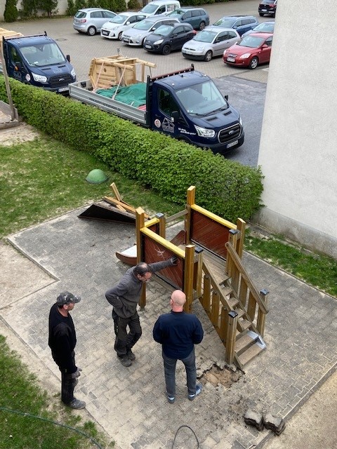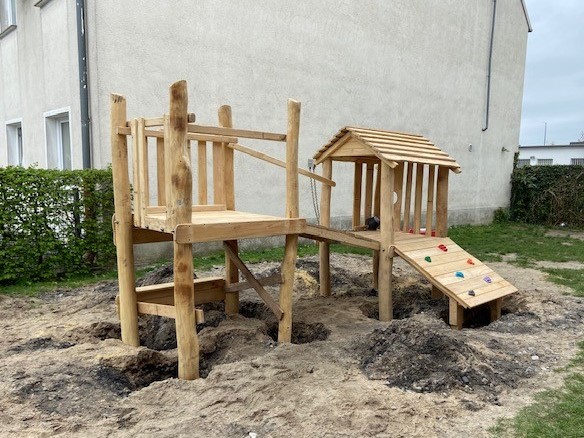 Nicht lange dauerte es, da stand auch schon ein neues Klettergerüst auf dem Außengelände der Kita.