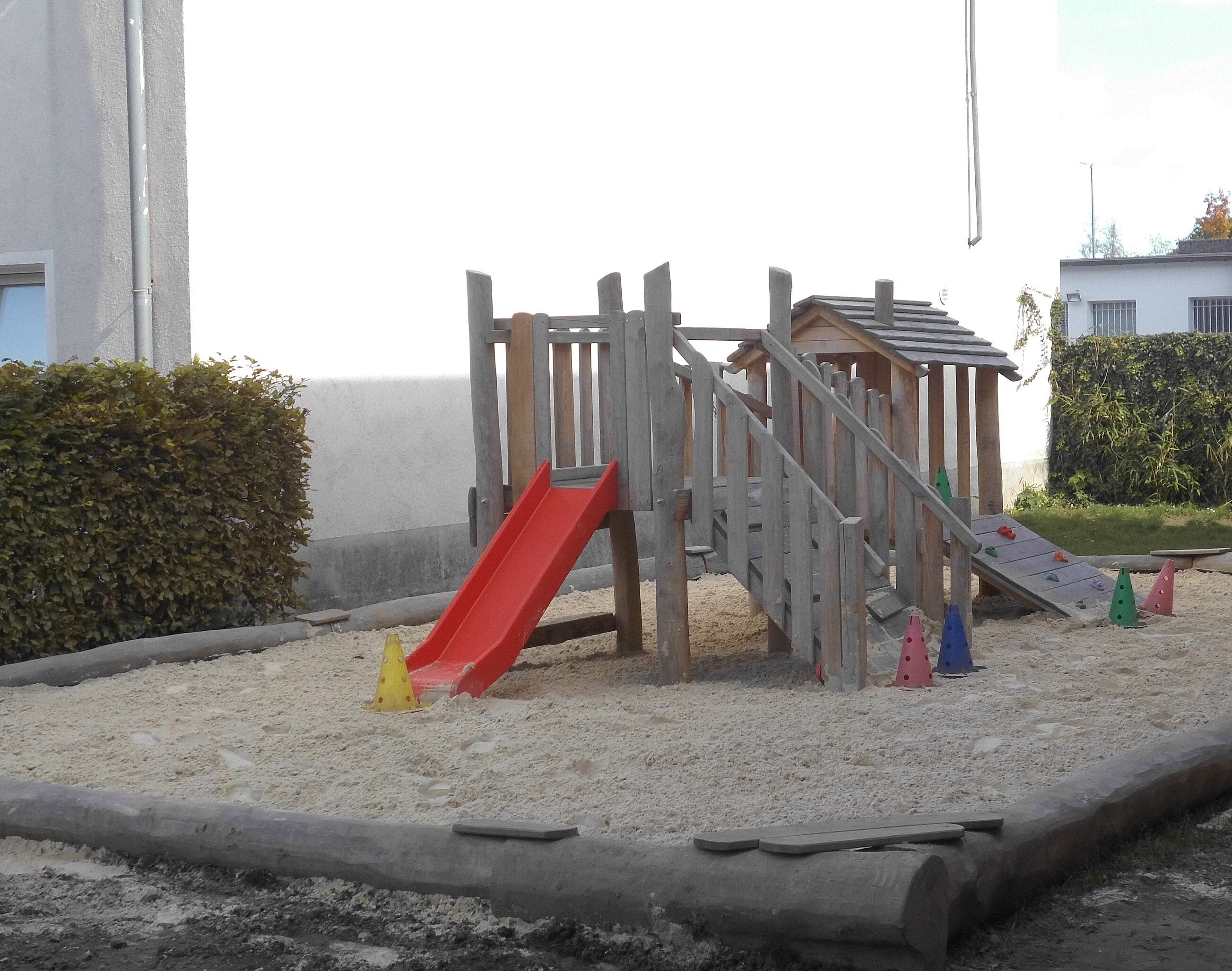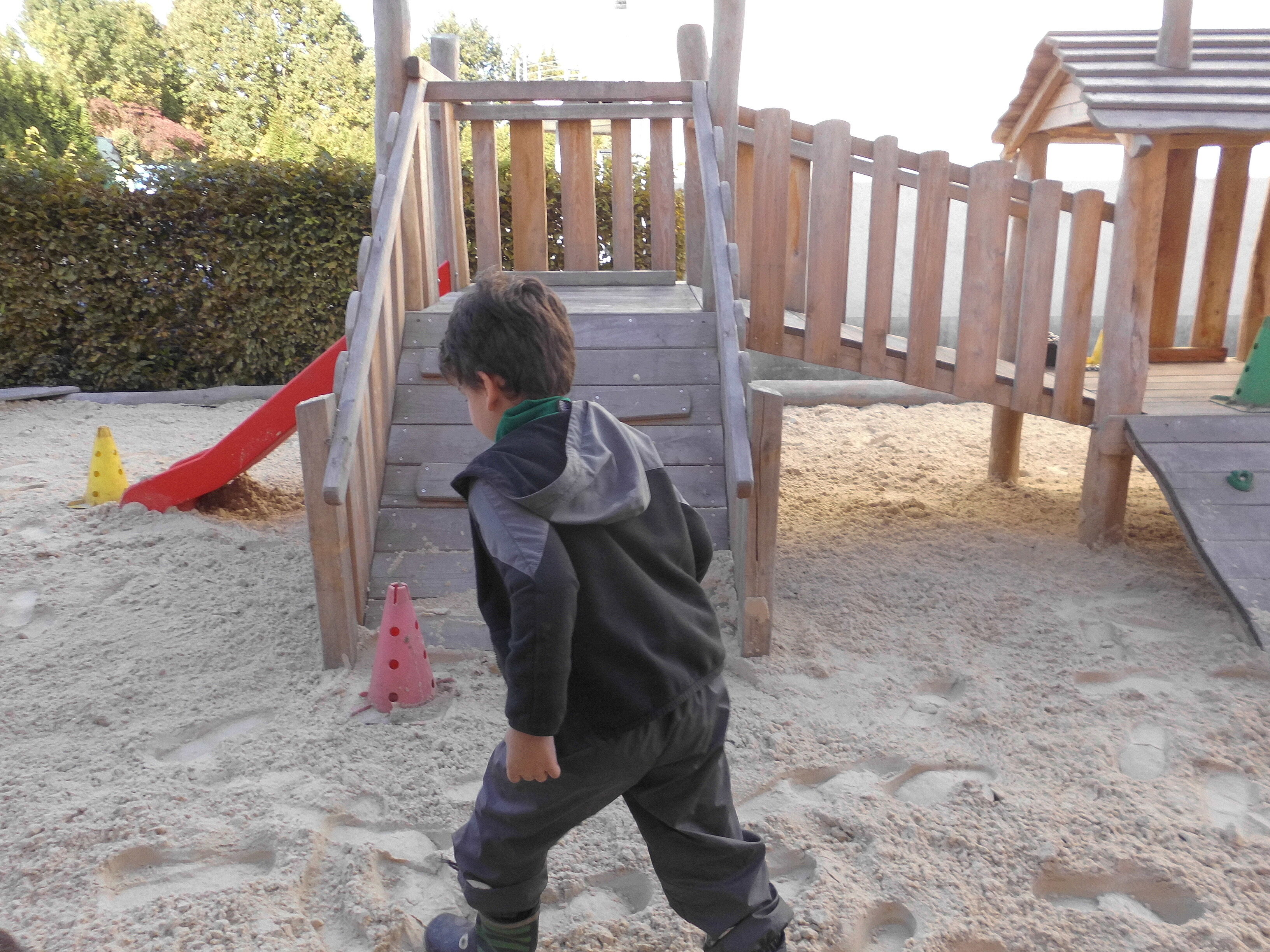 „Ui ist das schön“ sagten die Kinder, aber leider konnten sie nicht darauf spielen. Es fehlte noch der Sand als Fallschutz, wenn die Kinder von den Podesten springen.