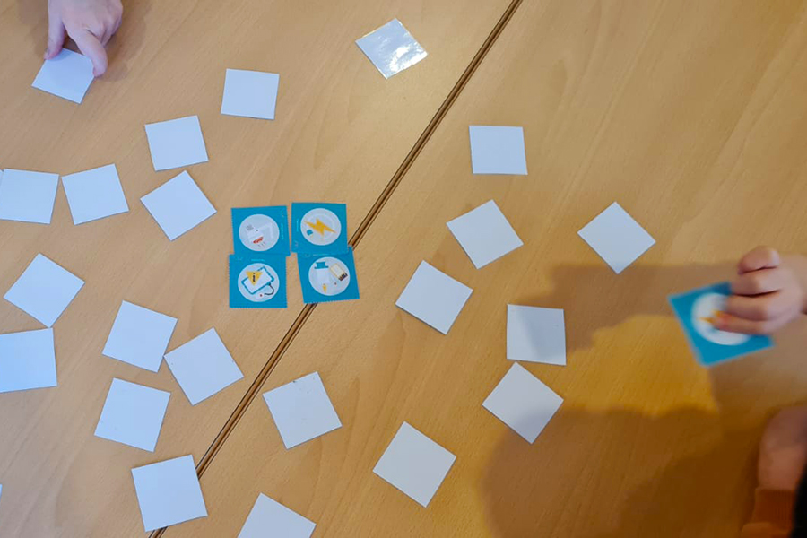 Dazu wurden beispielsweise Rätsel gelöst und mögliche Brandherde, Feuermelder, Feuerlöscher und Brandschutzpiktogramme im Kindergarten gesucht. Es wurden Sinneserfahrungen gemacht zu Fragen wie: Wie riecht Qualm? Wie fühlt sich kalt, warm und heiß an?